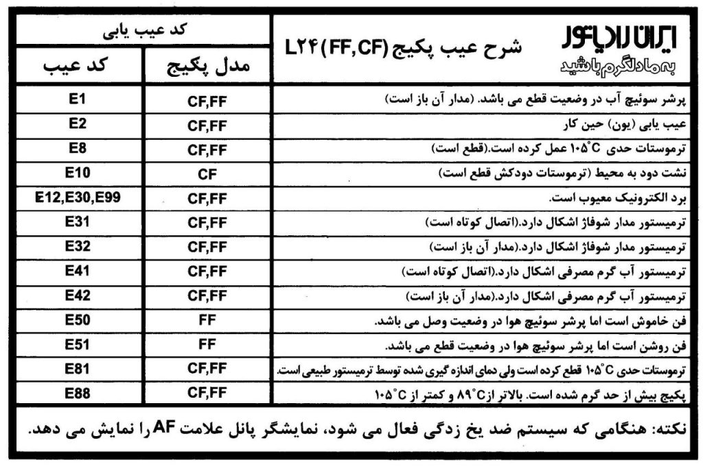 تصویر زیر کد عیب یابی دستگاه های دیجیتال ایران رادیاتور :